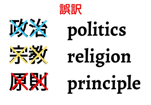 ハロー、エヴリワン。 これは「政教分離の原則」によるディストピア話。 「政治」「宗教」「原則」は世界と江戸時代にない洗脳訳(丶丶丶丶丶丶丶丶丶丶丶丶丶)。 このフレーズを語る日本民はリアルから分離している。 ポリティクスは政や治の字を含まない…